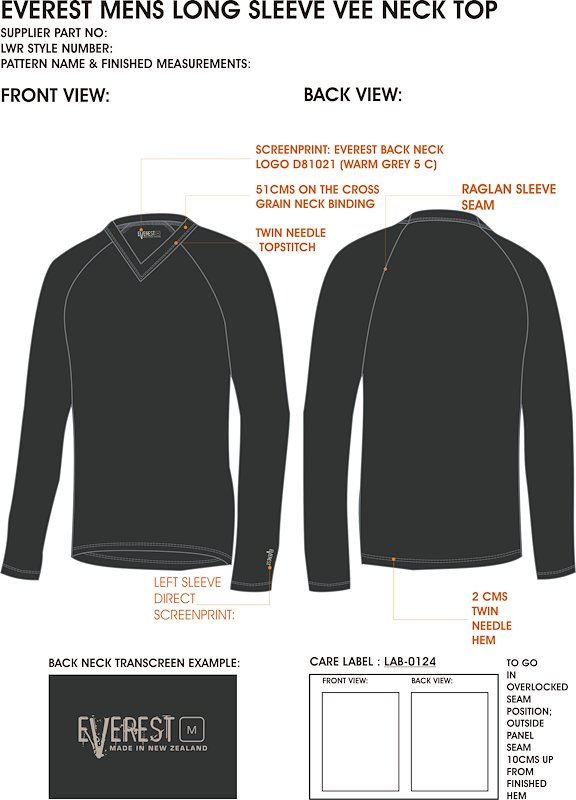 Label Screenprint Design,Technical Flat Drawings, Trim Design